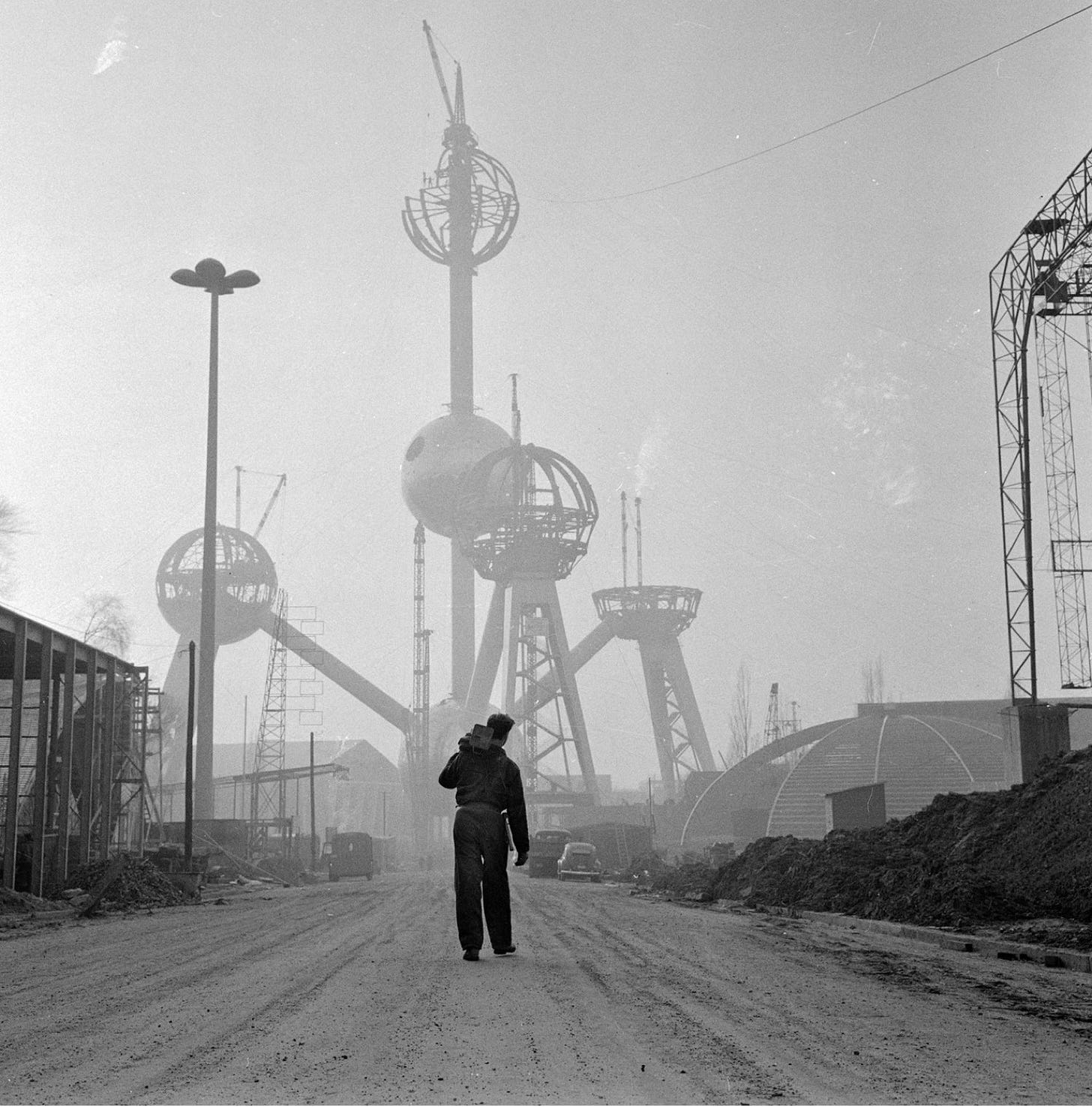 Given how often I find myself muttering it while perusing the internet, I’m starting to think “it looks like something out of a Simon Stålenhag book” should be my official motto. For example, there’s plenty you could say about this 1957 Dolf Kruger photograph of the Brussels Atomium under construction but … dammit it looks like something out of a Simon Stålenhag book.