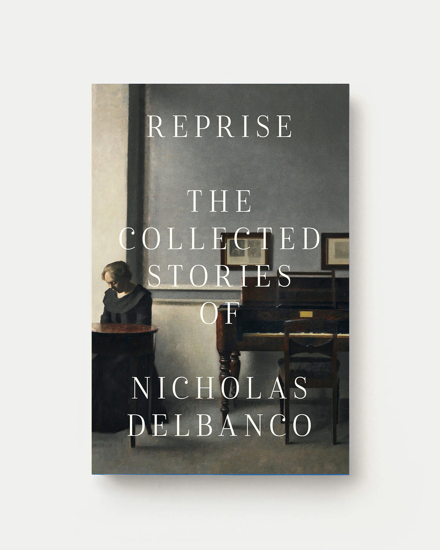 New cover for Dalkey Archive Press – Reprise, collecting three volumes of short stories by Nicholas Delbanco. That’s Ida In An Interior With Piano by Danish painter Vilhelm Hammershøi and isn’t it lovely?